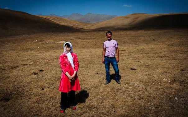 Kız kardeşini geri götürmeden önce Bişkekte son bir hatıra fotoğrafı çektiren abi ve kardeşini görüyoruz.