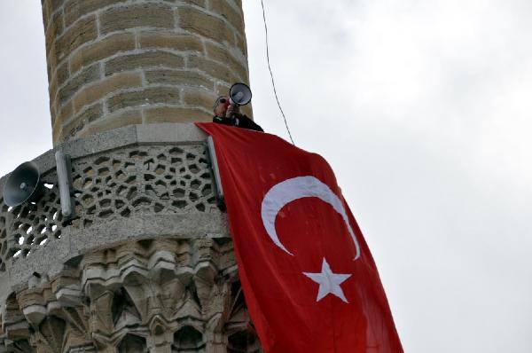 Tekirdağ'da 10 Kasım törenlerinin yapıldığı esnada tören alanının yanındaki caminin minaresine çıkan emekli bir astsubay, Türk bayrağı açarak basın açıklaması yaptı. Polisler astsubayı gözaltına aldı.