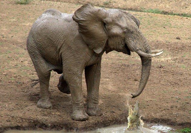 Ani bir hareketle hortumunu çeken fil, yaşadığı bu tecrübenin ardından çalılıkların arkasına kaçtı.