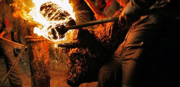İspanya'da 'Toro Jubilo' denilen ve her yıl tekrarlanan festivalde bir boğanın boynuzlarına yanıcı maddelerle dolu bir tahta parçası yapıştırılıp, tahta ateşe veriliyor.