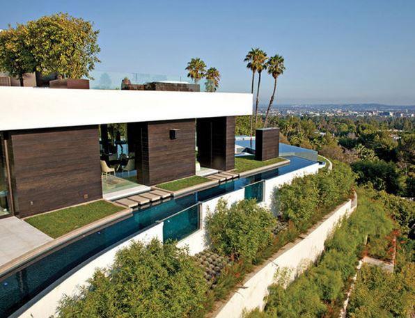 Dış cephesinin büyük bir kısmı camla çevrili evin etrafını ise, muhteşem bir su yolu çevreliyor.