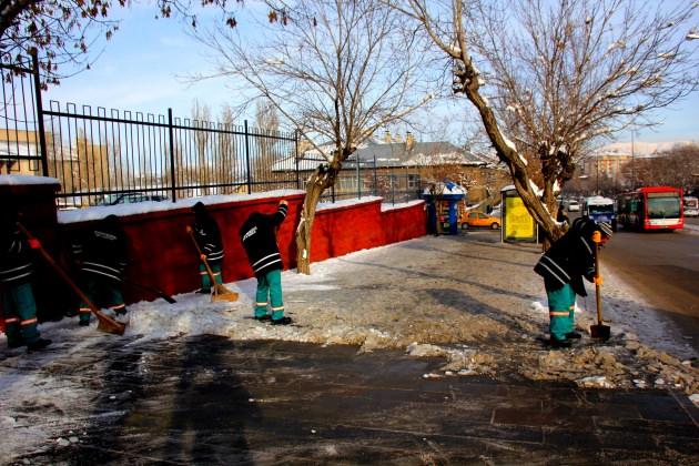 Kentte sabah saatlerinde mazotlu araçların çalışmadığı gözlenirken sürücüler ateş yakarak, takviye yaparak otomobillerine çalıştırmayı denediler.