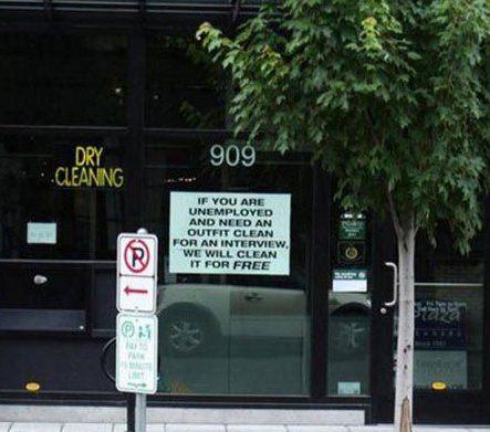 Portland’de bir kuru temizlemeci, işsiz olup da iş görüşmesine gideceklerin kıyafetlerini bedavaya temizleyeceğini duyurdu.