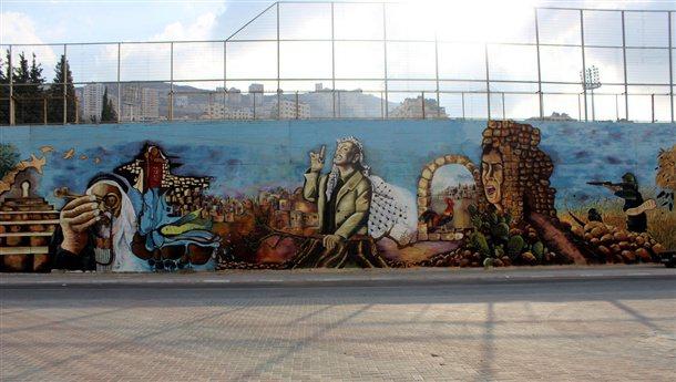 Filistinli 25 ressam, "Atina Grubu" adı verdikleri sanat grubuyla, 130 metre uzunluğunda, 7 metre yüksekliğindeki Nablus Stadı'nın duvarı aracılığıyla, 3 bin 500 yıllık Filistin tarihini resimlerle anlatmaya, eski Filistin Devlet Başkanı Yasir Arafat, ünlü şair Mahmut Derviş gibi tarihte yaşayan önemli şahsiyetleri ve İntifadalar gibi mühim olayları boyalarla canlandırmaya çalışıyor.