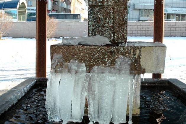 Erzurum'da çeşmeler buz tuttu