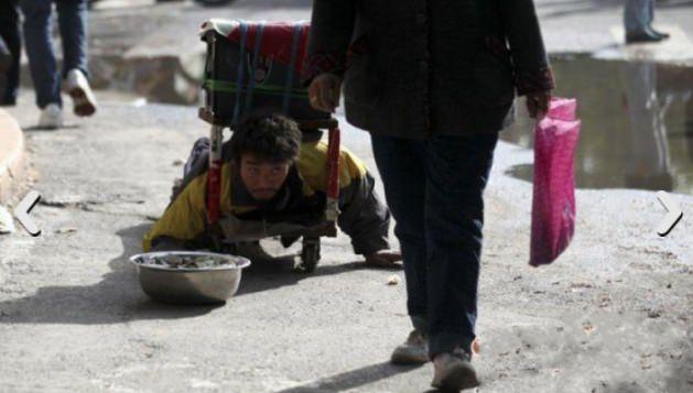 İşte yerde yatarak para dilenen Çinli dilencinin vicdan oyunu...