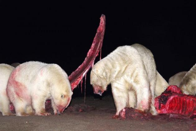 Kutup ayıları koca balinayı böyle parçaladı!