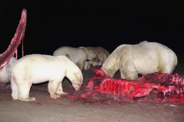Kutup ayıları koca balinayı böyle parçaladı!