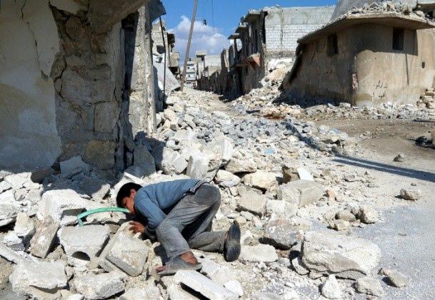 Suriye Halep`te Esed ordusu tarafından yapılan ve çok sayıda sivilin hayatına mal olan saldırı sonrası Suriyeliler yaşamlarını enkazların arasında sürdürmeye çalışmıştı. 03/05/2013 (Ali Demir - Anadolu Ajansı)