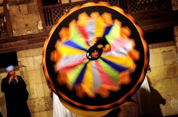 Mısır’da uzun renkli elbiseler giyen Sufi dervişlerin müzik eşliğinde yaptığı Tanoura Dansı ilgi çekmişti. 07/01/2013 (Muhammed Elshamy - Anadolu Ajansı