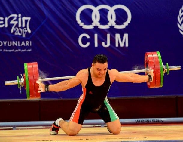 Mersin’de düzenlenen 17. Akdeniz Oyunları halter erkekler 85 kilo müsabakalarında Libyalı sporcu Marvan Abdussalam koparmada mücadele vermişti. 24/06/2013 (Berk Özkan - Anadolu Ajansı)