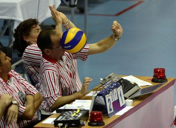 FIVB Dünya 21 Yaş Altı Voleybol Şampiyonası`nda Türkiye ile Mısır karşılaşmış, bir pozisyonda top masa hakeminin yüzüne isabet etmişti. 24/08/2013 (Evrim Aydın - Anadolu Ajansı)