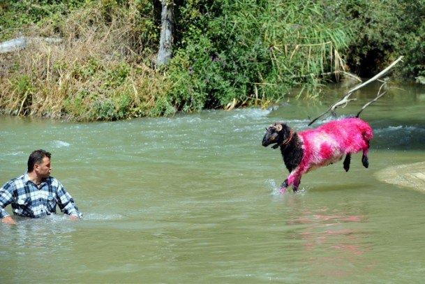 Denizli`nin Çal ilçesi Aşağıseyit köyünde 8 asırdır sürdürülen "Sudan Koyun Geçirme" yarışması yapılmıştı. 25/08/2013 (Erçin Top - Anadolu Ajansı)