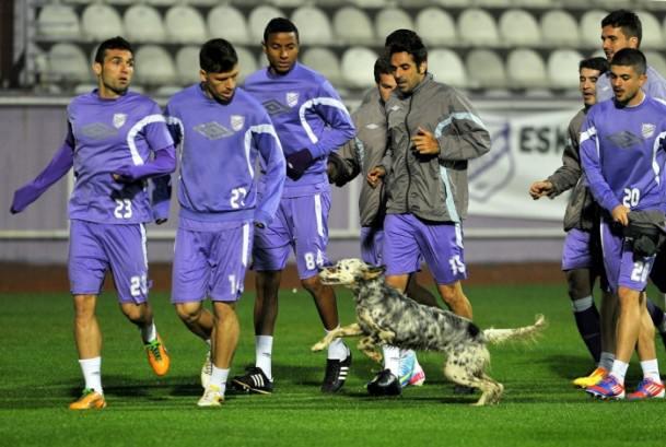 Orduspor futbolcuları, antrenman sırasında sahaya giren bir köpek nedeniyle zor anlar yaşamıştı. 28/03/2013 (Hayati Akçay - Anadolu Ajansı)
