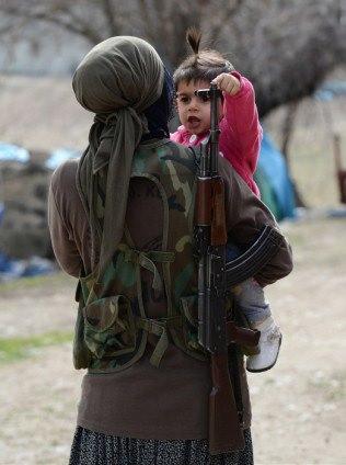 Tunceli’de terörle mücadelede güvenlik güçlerine yardımcı olmak ve köylerini korumak amacıyla geçici köy korucusu olarak görev yapan 25 kadın arasında yer alan Züleyha ve çocuğu objektife böyle yansımıştı. 01/04/2013 (Dilek Mermer - Anadolu Ajansı)