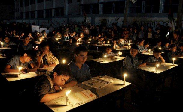 Gazze`deki Jabalya Toplama Kampı`nda yaşayan Filistinli çocuklar, sık sık yaşanan elektrik kesintilerinin ders çalışmalarını olumsuz etkilediğine dikkat çekmek için mumlu protesto düzenlemişti. 07/11/2013 (Mohammed Talatene - Anadolu Ajansı)