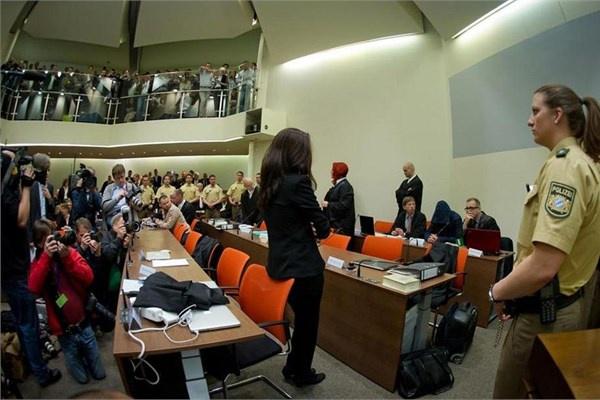 Almanya'da 2000-2007 yılları arasında 8'i Türk 10 kişiyi öldürmekle suçlanan Aşırı sağcı "Nasyonalsosyalist Yeraltı" terör örgütü (NSU) davasının baş sanığı Beate Zschaepe (ortada), hakim karşısına çıkmıştı. 06/05/2013