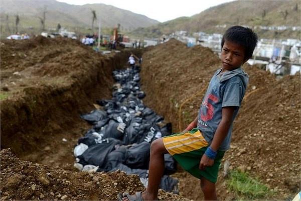Filipinler’de Haiyan tayfununda yaşamını yitirenler, ceset toplama merkezindeki kamyonlara yüklenerek toplu mezarlara götürülmüştü. 16/11/2013