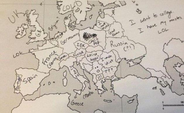 Bu öğrenci Türkiye'yi bulamadığı gibi İtalya'nın Sicilya adası üzerine Yunanistan yazmış.