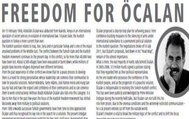 17 Şubat: İngiliz The Guardian gazetesinde Öcalan'a özgürlük talebiyle bir ilan yayınlandı.