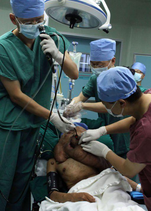 Geçtigimiz günlerde ameliyat Çin'in Guangzhou Hastanesi'nde ameliyat olan adamın sadece sol yanağından 1.5 kilogramı aşkın tümörü alındı.