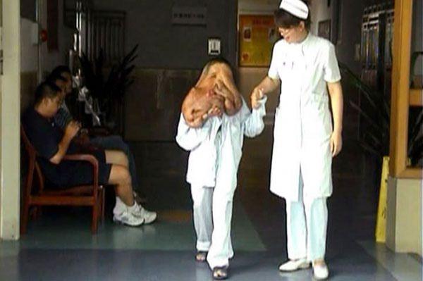 Huang Chuncai'nin suratındaki tümörün 5 sene önce tartıldığında 15 kilogram olduğu ve suratındaki ekstra ağırlık nedeni ile omurganın ve beldeki kasların zedelendiği de belirlendi.
