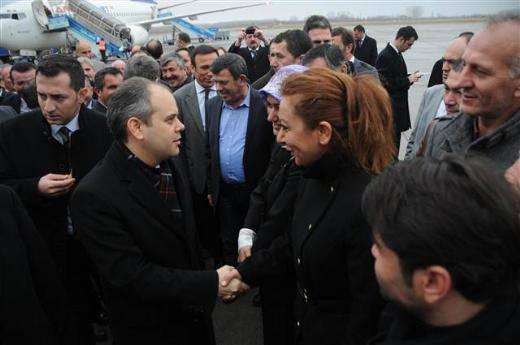 Bakan Kılıç’ın uçaktan inişinin ardından apronda uzun bir karşılama kuyruğu oluştu. Kendisini karşılamaya gelenlerle tek tek selamlaştı.