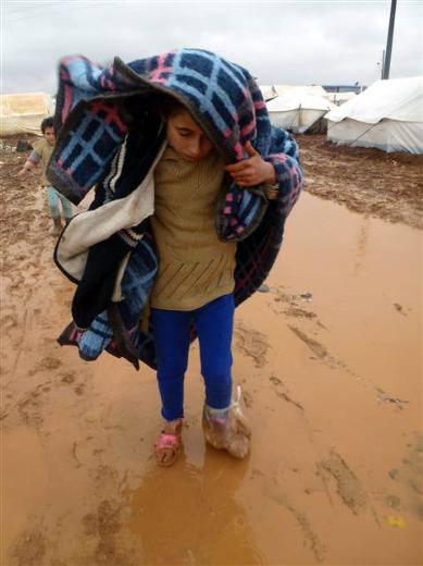 Suriye ordusuna ait savaş uçaklarının son günlerdeki yoğun bombardımanı nedeniyle sınır bölgelerine kaçan sivilleri bu kez de soğuk ve çadır kentlerdeki çamur vuruyor.