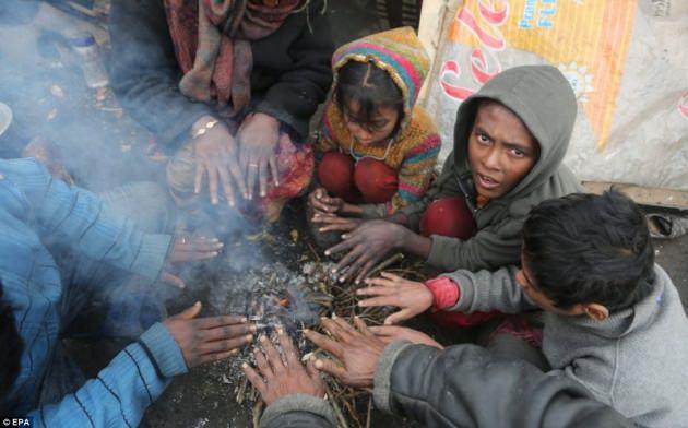 Kuzey Hindistan'ın genelinde kendisini gösteren soğuklar nedeniyle bu tarz yürekleri burkan görüntüler ortaya çıkıyor.