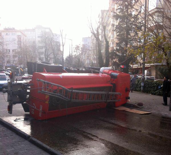 Yangına giden itfaiye aracı böyle devrildi!