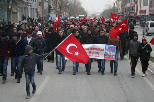 Sarıkamış Harekatı'nın 99. yıl dönümü etkinlikleri kapsamında düzenlenen 'Türkiye Şehitleriyle Yürüyor Anma Yürüyüşü' Erzincan'da yapıldı.