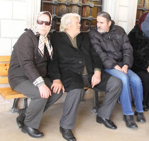 Oğlu ve eşinin desteği ile yürüyen Cüneyt Arkın, taziyeleri oturduğu yerden kabul etti.