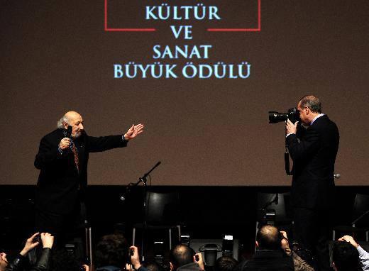 Başbakan Recep Tayyip Erdoğan ve foto muhabiri Ara Güler, Kültür ve Sanat Büyük Ödülleri Töreni.