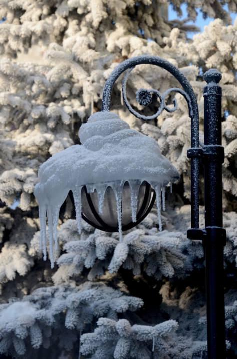 Kars'ın Sarıkamış ilçesinde soğuk hava nedeniyle bazı sokak aydınlatmaları buz tuttu.