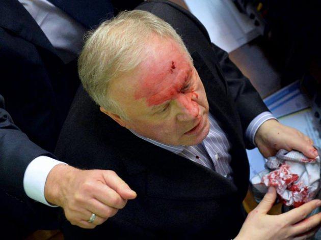 Ukrayna'nın başkenti Kiev'de parlamento'da 2014 bütçesi görüşmeleri sırasında iktidar partisi ile muhalefet partisi milletvekilleri arasında kavga çıktı.