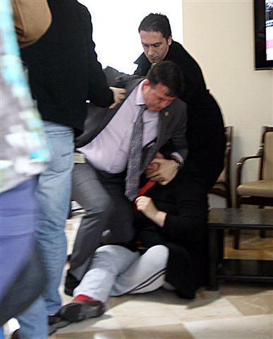 Cumhurbaşkanlığı kurumsal iletişim dairesinden bir yetkili ile görüşen Berat D., görüşme bittikten sonra ayağa kalkarak Gürcistan Devlet Başkanı Giorgi Margvelashvili’nin ziyareti için Türkiye’ye gelen Gürcü gazetecilere doğru yöneldi.
