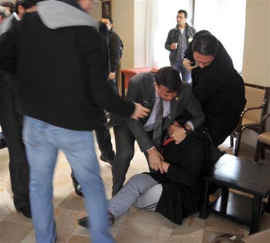 Önünde duran Cacanidze’yi saçlarından tutarak yere yatıran ve tartaklayan Berat D.’ye, orada bulunan gazeteciler müdahale etti.