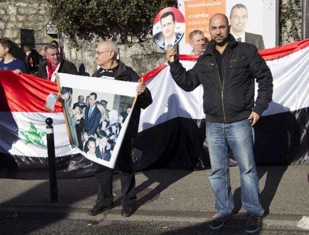 İsviçre polisinin yoğun güvenlik önlemi aldığı kongre merkezi önünde toplanan Suriye'liler, Beşşar Esad lehine sloganlar atarak, "Barış" ve "Biz Suriye halkıyız. Topraklarımızdaki teröre destek vermeği bırakın" şeklinde pankartlar açtılar.