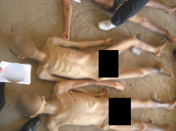 Çocuk ve yaşlıların açlığa terk edildiği anlaşılan fotoğraflarda, zincirlerle yapılan işkence ayrıntıları da net bir şekilde görülüyor.