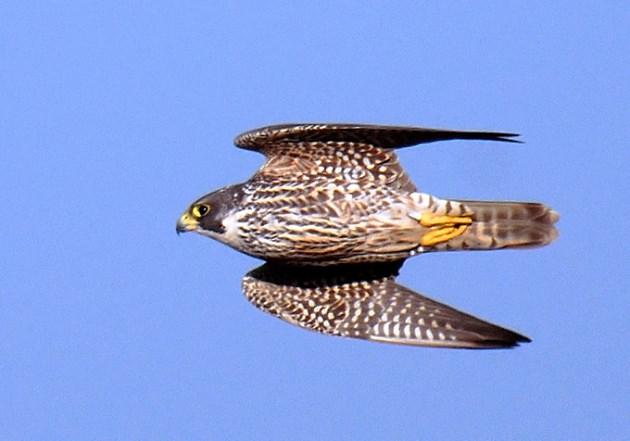 Kartal ölçülerinde bir doğan türü olaran bu kuşun sırt mavi-gri, alt kısmı beyaz çizgili, kafası ve “bıyıkları” siyah renktedir.