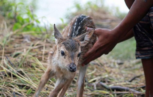 Çocuk sağ salim kıyıya çıkarken, hayatını riske ederek tümüyle sular içindeyken geyik yavrusunu elinin üzerinde taşıdığı fotoğraf, insanlık adına bir abide olarak zihinlerde yer etti.