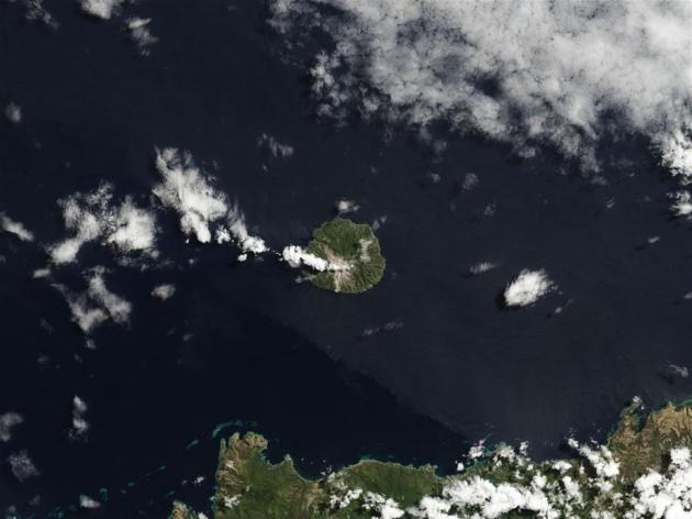 Paluweh Adası'ndaki yanardağın duman püsküren anları, 4 Eylül 2013'te böyle görüntülendi.