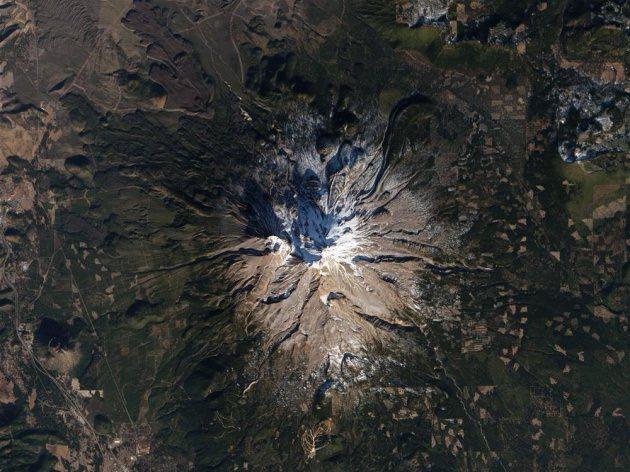 Ladsat 8 tarafından 4 Ocak 2014 tarihinde çekilen karede, Shasta Dağı'nın karlı tepeleri görülüyor. Dağın eteklerine doğru neredeyse hiç beyazlık kalmamış olması, son yılların en ciddi kuraklığıyla karşı karşıya olan California'nın içinde bulunduğu durumu gözler önüne seriyor.