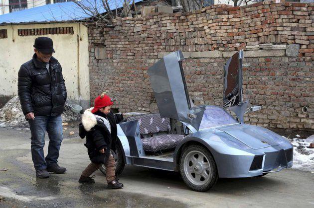 Guo, toplamda 821 dolar (Yaklaşık 1800 lira) harcayarak, dünyaca ünlü otomobil markası Lamborghini'nin mini bir kopyasını torunu için üretti.