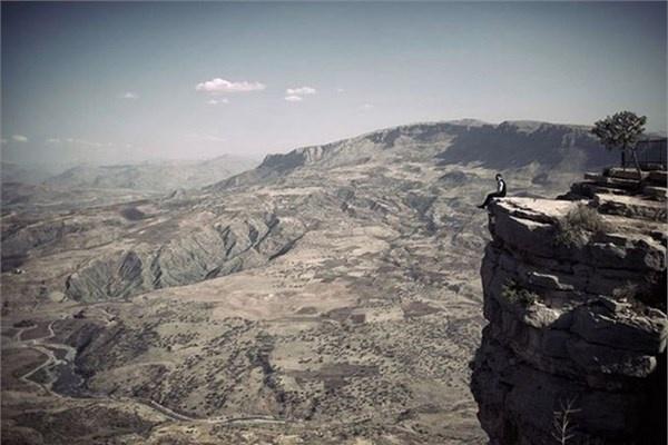 Siirt'in Tillo ilçesinde bir adam uçurumun kenarına oturarak Botan Vadisi'ni izliyor.