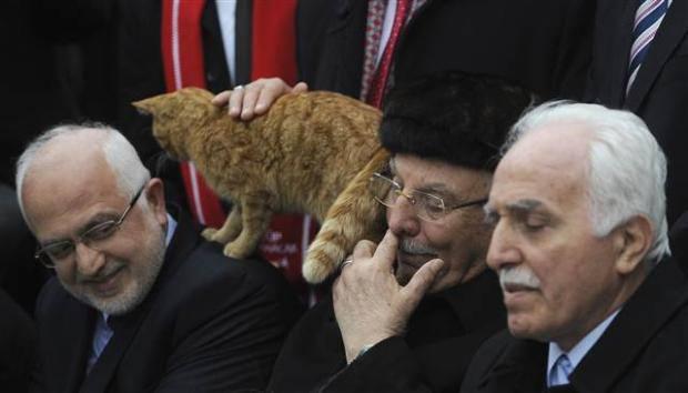 Kedi Hatipoğlu’nun omuzuna tırmandı.
