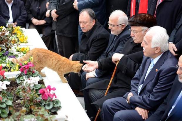 Anma töreninde kedi şaşkınlığı!