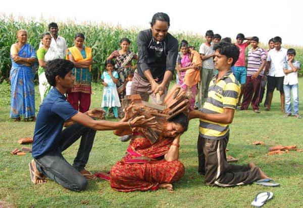 Bhramaramba Budati ülkedeki inanışa göre Prakashan gücü ile kutsanmış bir kadın olarak görülüyor ve eşi Balashankar Budati'nin kafasında tuğla kırmasına ve boğazındaki hindistan cevizini kılıçla doğramasına izin veriyor.