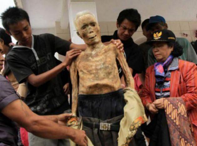 Sonrasında da, ölülerini yeni giysileri ile birlikte kasabanın etrafında yürütüyorlar.