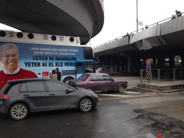 Vatandaşlar seçim otobüsünün üzerinde yazan “Yavaş Gardaşım Yavaş Geliyor Mansur Yavaş” sloganını kullanarak, parti otobüsünü kullanan sürücüye “Yavaş Gardaşım Yavaş. Görmüyor musun?” diye bağırması dikkat çekti.